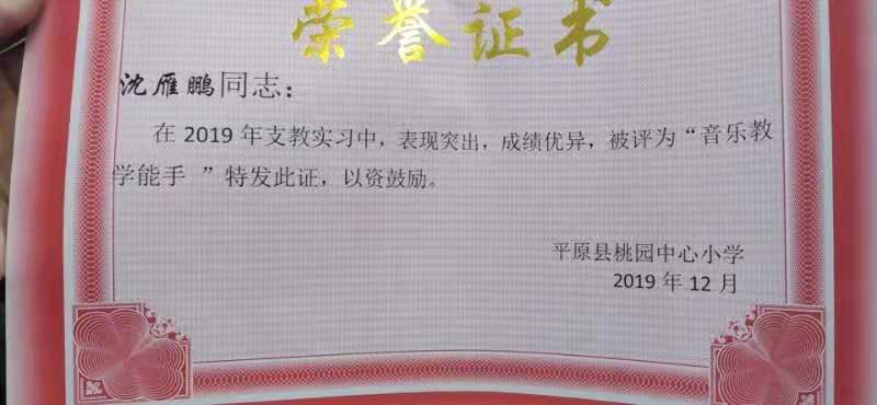 本次实习支教自2019年8月28日正式开始,99名支教学生分别在乐陵、宁津、武城、临邑、平原、庆云的49所中小学进行了为期四个月的实习支教活动。在实习期间同学们以校为家、爱岗敬业,对学生关爱有加,和同事和谐相处,对待工作一丝不苟,充分展示了我院实习生良好的综合素质和扎实的专业基础,受到了当地教育主管部门和支教学校的一致好评,共有68人先后获得优秀支教大学生、最受学生欢迎老师、最美教师、音乐课堂组织标兵、德育工作先进个人等荣誉称号。
