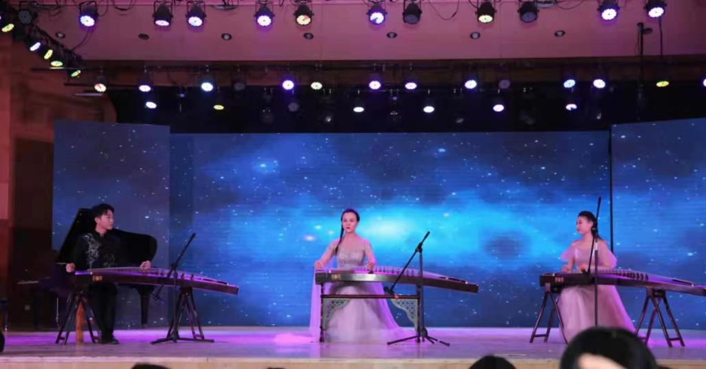 音乐会由宋飞飞老师演奏风格独特的扬琴《龙船》展开,热烈欢腾的音乐感染了在场的每一位观众;李鹏老师以及助演李玥铭带来灵动而活泼的钢琴曲《菊次郎的夏天》让人听来有一种舒心的情怀;陈凌老师、付阳、陈星晔演奏曲调宽广开阔,满怀激情,抒情如歌的古筝三重奏《银河碧波》;王雷老师带来源远流长,风采各异的民间舞蹈《山东鼓子秧歌》,舞蹈充分展示了华夏民族乐舞文化史上的艺术瑰宝;李德敬老师的古琴独奏《石上流泉》表现了碧涧泠泠,枕流漱石的童趣;蔺吉昌老师、朱文琪老师带来富有异国风情的手风琴二独奏《俄罗斯经典民歌独奏》美妙的旋律萦绕在同学们脑海里,久久不能散去;马锡骞老师演奏民族风格浓郁的萨克斯独奏《月宫》,描绘神话中的月中嫦娥和仙宫景色,是中西音乐文化交融的典范之作,更是萨克斯管民族化进程中的里程碑;马立婧老师、徐琦老师共同演奏清新活泼的筝与埙重奏《梅花三弄》,描绘梅花在寒风中次第绽放的英姿,不屈不挠的个性和节节向上的气概;乔云老师的扬琴独奏《渔岛月夜》结合了当地民间曲调和扬琴的多种演奏技巧,色彩层次变化丰富,令人仿佛置身于宁静的海岛月色之中;最后音乐会在樊海伦老师演奏的小提琴协奏曲《四季—夏第二、三乐章》中圆满结束。器乐舞蹈教研室全体教师以饱满的热情投入神圣的教学事业,执着提升自身教学能力,为德州学院的蓬勃发展奉献自己的微薄之力。
