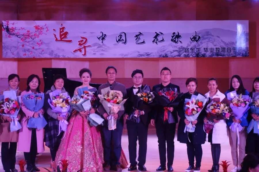 一首《听雨》拉开了音乐会的帷幕, 歌词意境优美,旋律抑扬顿挫,如诉如怨,路东龙用出色的声乐演唱技巧表达出了歌者对故乡的思恋之情。接踵而至的《教我如何不想他》、《春思雨》、《玫瑰三愿》等耳熟能详的音乐作品,悠长的旋律、抒情的歌唱,带领观众们徜徉在声乐的海洋里。一首艺术歌曲《大江东去》,中西风格交融,歌曲荡气回肠,观众们的情绪随着旋律而浮动。最后,导师李琛与路东龙共同演唱了歌曲《追寻》,深情地赞颂了老一辈无产阶级革命家在建国大业中的丰功伟绩,唱出了用一生信仰去追寻的新中国的蓝图,同时也为祖国中华人民共和国成立70周年献礼,现场观众无不为之震撼。音乐会在连绵不绝的掌声中圆满结束。