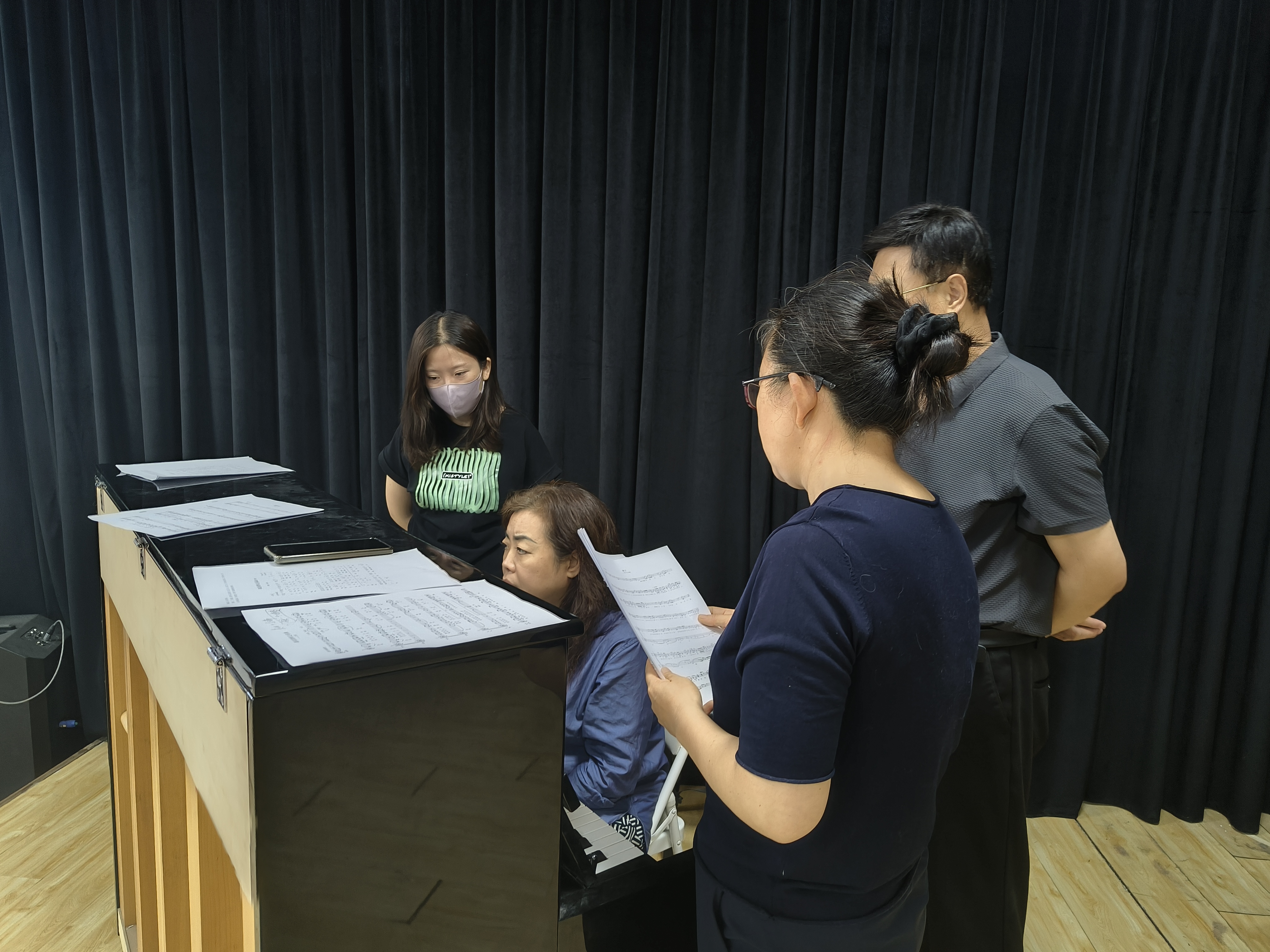 今年以来,王硌教授和徐学吉教授多次来到农民影视在线观看进行编曲制作的商讨并指导组歌编排,与师生深入交流,共同探讨作品的演唱技巧和情感表达。特别是在首演前的排练过程中,王硌教授全程指导,提出宝贵意见。王教授对每首歌曲的演绎提出了专业的建议,使演唱者们能够迅速调整状态投入演出,此外王教授还亲自示范演唱,让师生们深刻感受到西征组歌《担当》的魅力和力量。