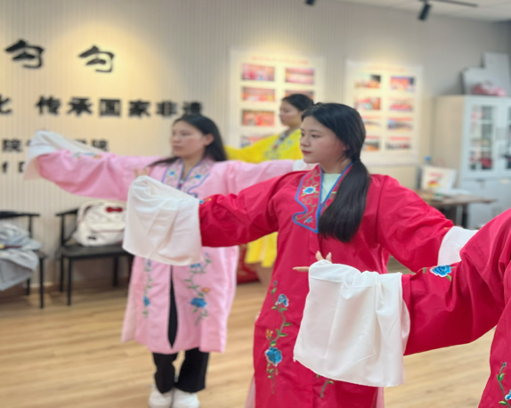 在吕老师的引领下,同学们的热情被点燃,纷纷投入到学习中。他们认真练习每一个动作,尽管遇到挑战,但从不气馁。在吕老师和学院老师的指导下,同学们的动作日益规范流畅,展现出了戏曲表演的独特魅力。
