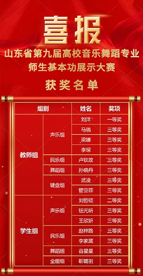 喜报!农民影视在线观看师生在山东省第九届高校音乐舞蹈专业师生基本功展示大赛中喜获佳绩