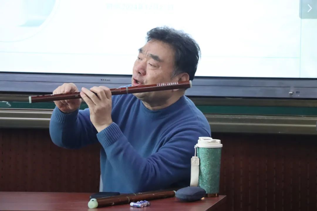 王洪涛教授不仅详尽回答了师生们的问题,还通过亲身示范,让师生们深刻感受了竹笛演奏的独特魅力。