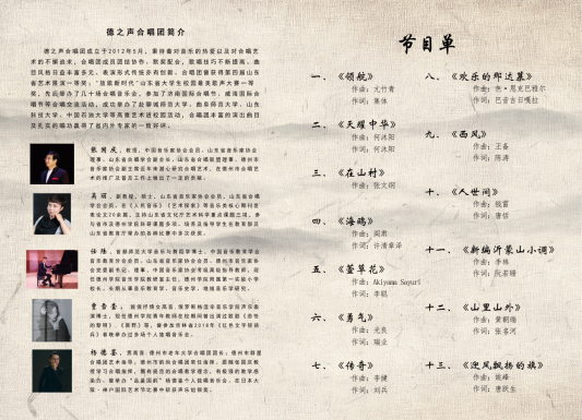 “德之声”合唱团成立于2012年5月,由德州学院农民影视在线观看100余名在校生组成,旨在普及高雅音乐、推广合唱艺术、提高学生综合素质和艺术实践能力。多年来,“德之声”合唱团在张国庆教授和吴丽副教授的带领下获得了第四届山东省艺术展演一等奖,"放歌新时代"山东省大学生校园最美歌声大赛一等奖,先后举办了几十场合唱音乐会,参加了济南国际合唱节、威海国际合唱节等合唱交流活动,成功举办了赴聊城师范大学、曲阜师范大学、山东科技大学、中国石油大学等高雅艺术进校园活动,合唱团丰富的演出曲目及扎实的唱功赢得了省内外专家的一致好评,在推动合唱艺术和高雅音乐的普及方面做出了应有的贡献。