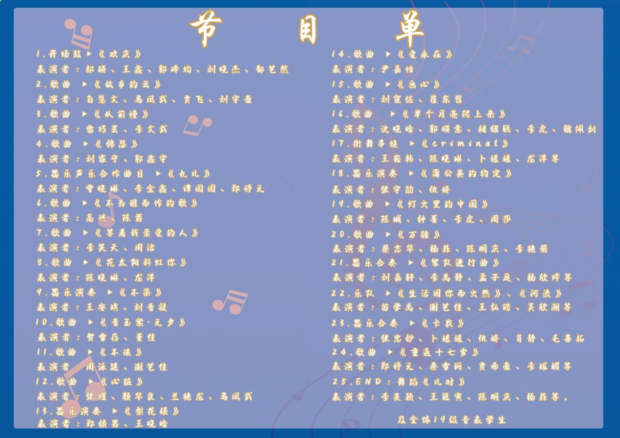 音乐表演专业课程改革与实践系列音乐会(五)风雨兼程,“音”你而行——2019级舞台表演课程音乐会