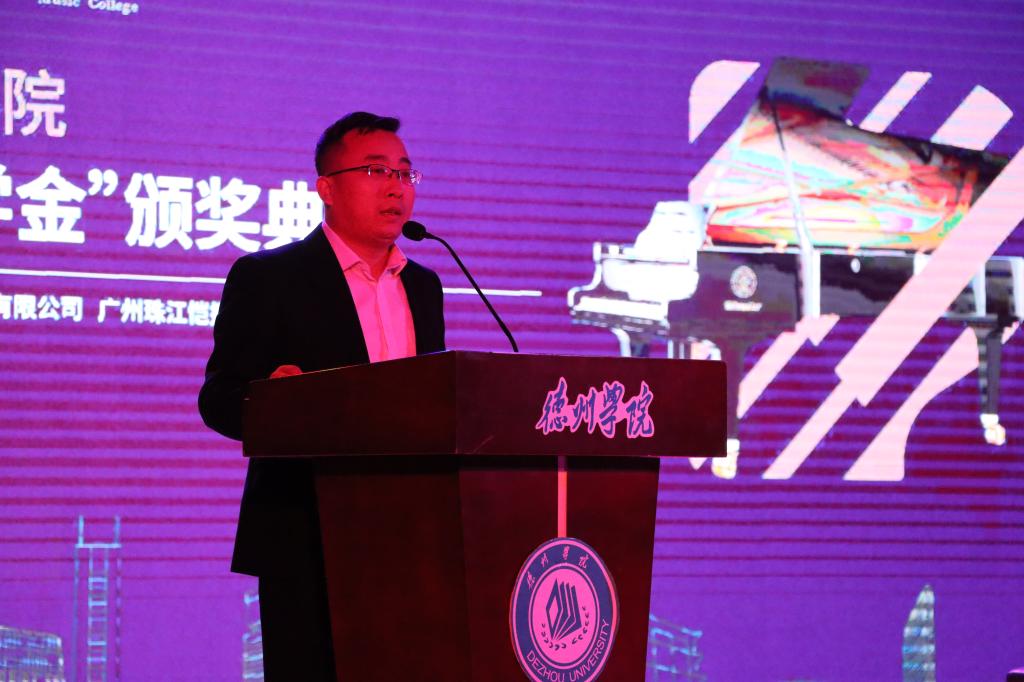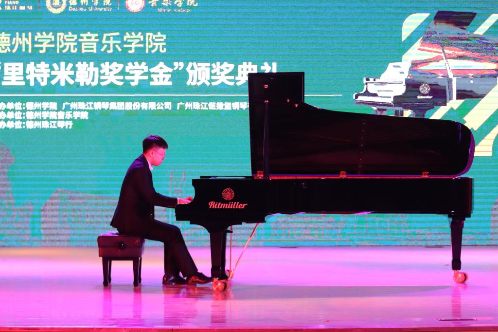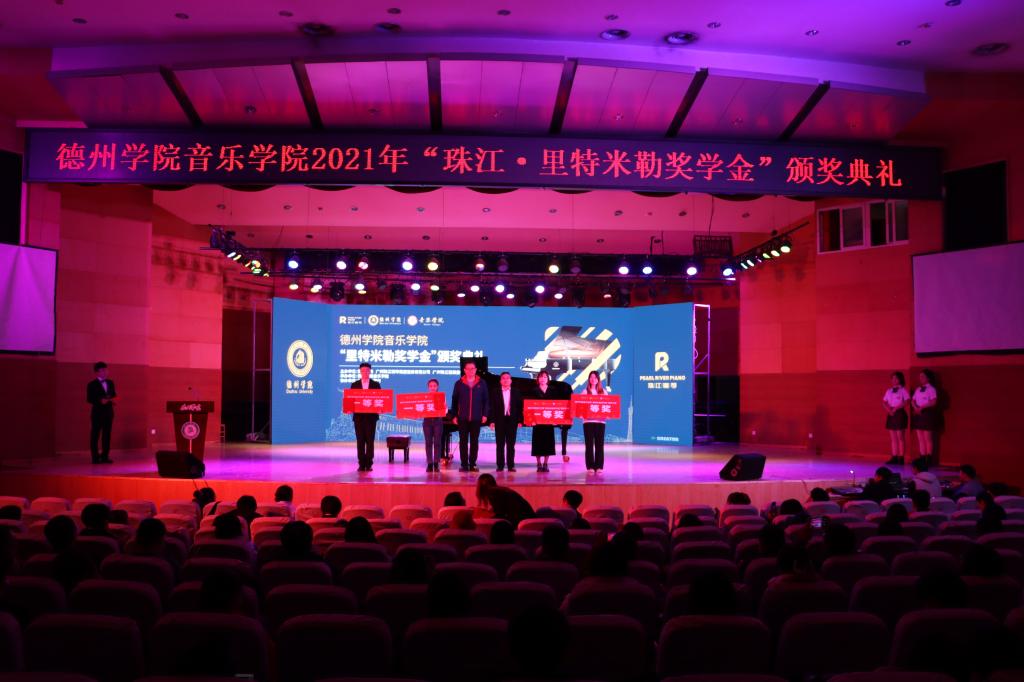 12月7日晚,农民影视在线观看2021年"珠江•里特米勒奖学金"颁奖典礼在南校音乐厅隆重举行。广州珠江恺撒堡钢琴有限公司副总经理李富龙、广州珠江钢琴集团德州总代理兼德州珠江琴行总经理高文涛、德州学院合作发展处处长张学军、农民影视在线观看领导班子成员共同出席。