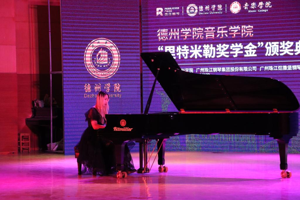 之后又进行了“珠江·里特米勒奖学金”钢琴音乐会,优秀获奖学生展示了获奖作品,音乐会在钢琴教师丁玥绵延不绝的《中国之梦》中落下帷幕,伴随着主持人的退场词,此次活动宣告圆满结束,参会领导与获奖选手共同合影留念。