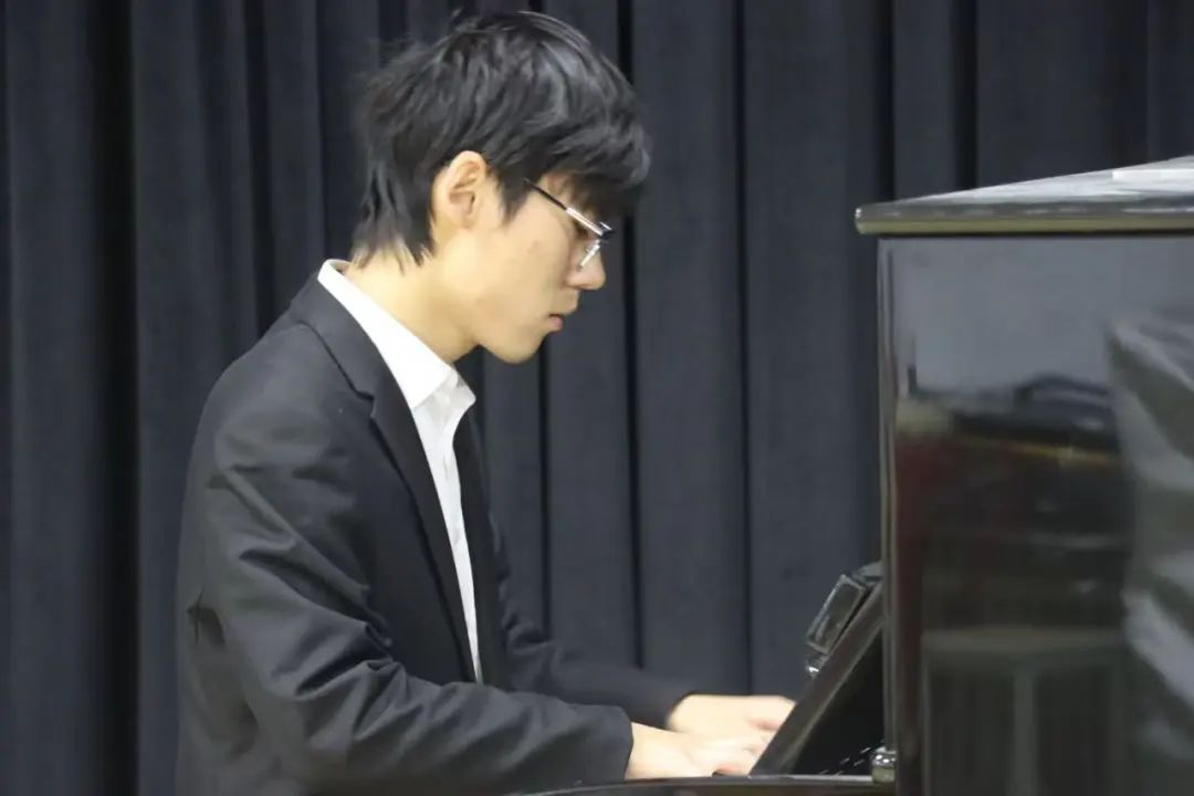 季炫辰同学的钢琴独奏《侏儒进行曲》如行云流水,指尖在琴键上轻快跳跃,流淌出的音符清脆悦耳。