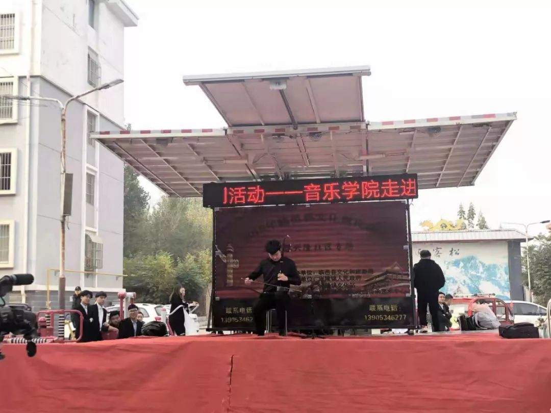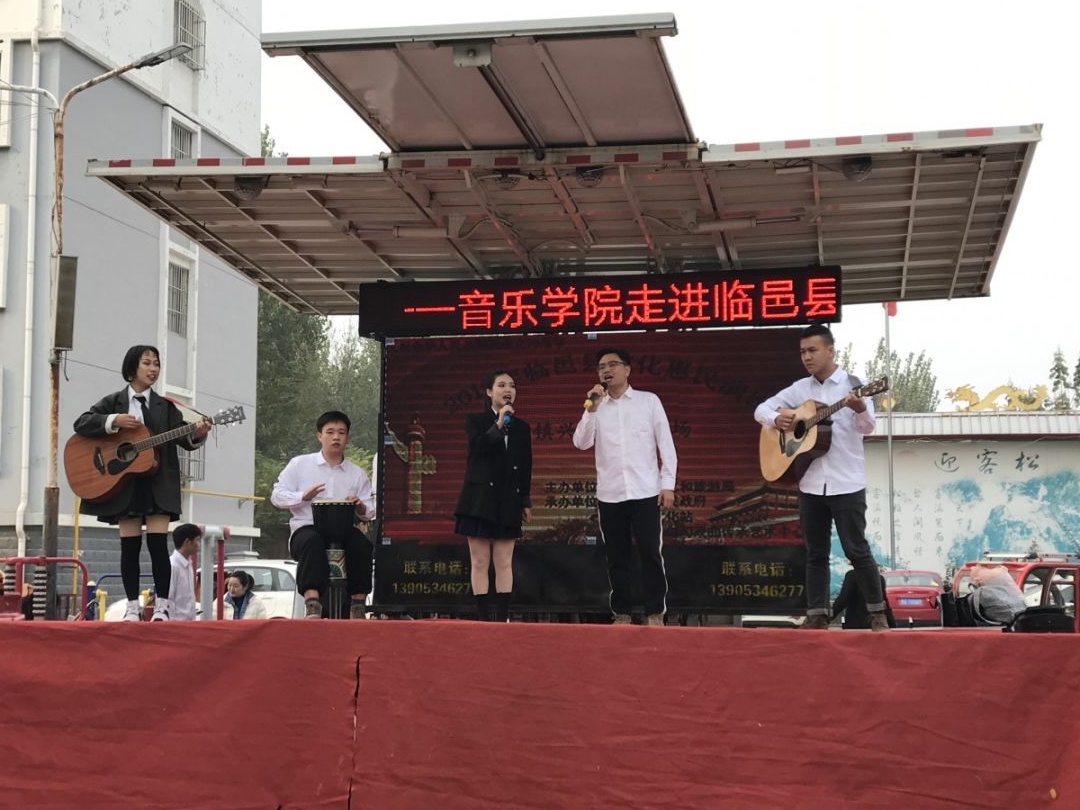 11月6日,农民影视在线观看2016级音乐表演专业毕业生来到临邑县兴隆镇,将丰富多彩的文艺演出送到村民身边,以实际行动落实农民影视在线观看服务地方文化建设。