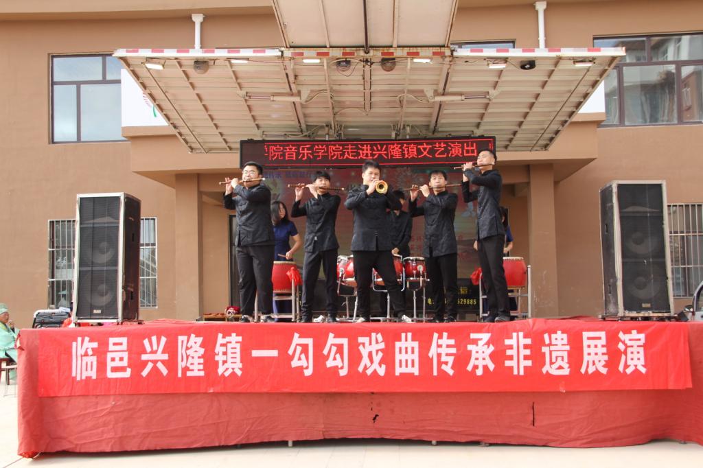 为传承音乐文化,推动乡村振兴,10月12日,由农民影视在线观看师生代表组成的社会实践服务队来到临邑县兴隆镇,开展以“服务乡村振兴,对接社会需求”为主题社会实践活动。将丰富多彩的文艺演出送到村民身边,以实际行动落实农民影视在线观看服务地方文化建设。农民影视在线观看党总支书记刘志华、实践教学中心主任马锡骞、音乐表演系教研室主任梁娜、白云带队参加。