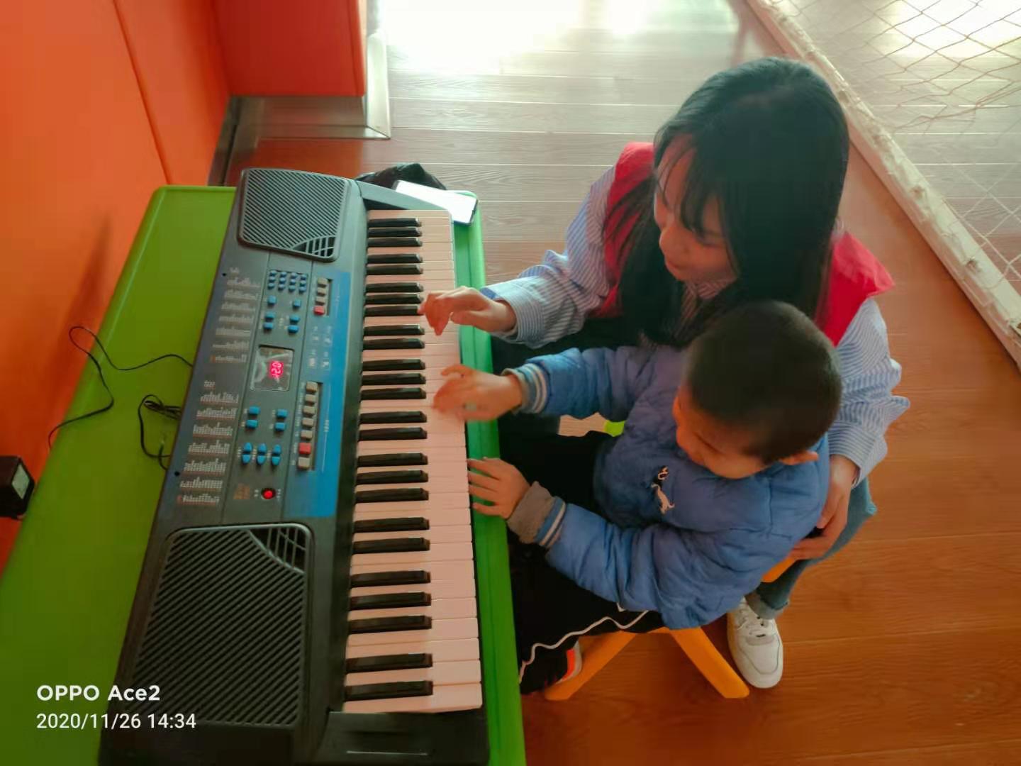 青志部负责人和学校老师联系后,全部志愿者于两点到达学校。并了解到本周有舞蹈演出活动,此次支教重点在舞蹈。本次支教一共开设五门课程:声乐,钢琴,古筝,架子鼓,竹笛。每一门课程都有专门的负责人组织好各个课程的志愿者,对接上一次志愿者支教的支教内容,继续教学。声乐课堂上孩子们美妙的歌声萦绕在耳边,稚嫩的童声感染着每一个人的心灵。她们虽然身体有缺陷,但是在音乐方面极具天赋,不亚于一般的孩子们。