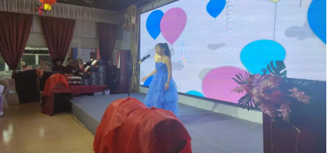 有了舞蹈和歌曲,当然是少不了器乐曲,由我院器乐生李家葳和刘莎所带来的非洲鼓与古筝的器乐合奏曲《伊犁河畔》及张忠钞带来的小提琴表演《永远同在》则有着别样的风味。随后由我院声乐生沈炜演唱《滚滚长江东逝水》,声音浑厚如酒,让人回味无穷。最后,在歌曲《难忘今宵》中,此次演出活动宣告结束,主宾共同举杯庆祝盛典的圆满成功。