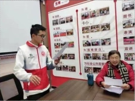 寒假期间,我来到绿城社区党群服务中心进行志愿服务,主要负责教社区的爷爷奶奶合唱、跳舞,丰富老年人的娱乐生活。