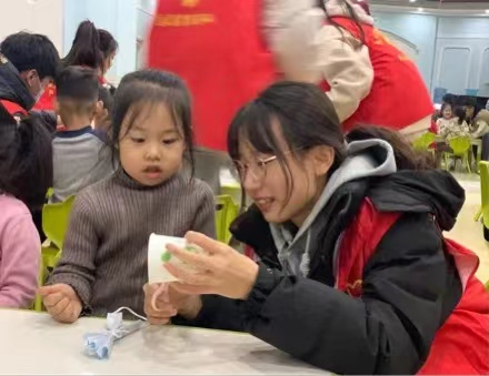 活动现场,志愿者们为小朋友演唱垃圾分类歌。将垃圾分类与文艺演出相融合,以教唱歌曲的形式宣传垃圾分类理念。在轻松愉悦的氛围中小朋友们对垃圾分类有了初步的了解。接着,志愿者们给小朋友介绍垃圾分类的具体知识和内容,用简单形象的语言让孩子们了解什么是垃圾分类、垃圾如何分类界定等。小朋友们在志愿者的带领下充分发挥自己的想象力,利用生活中常见的纸盒、废纸等创造出了一件件构思新颖、别具一格的手工作品。