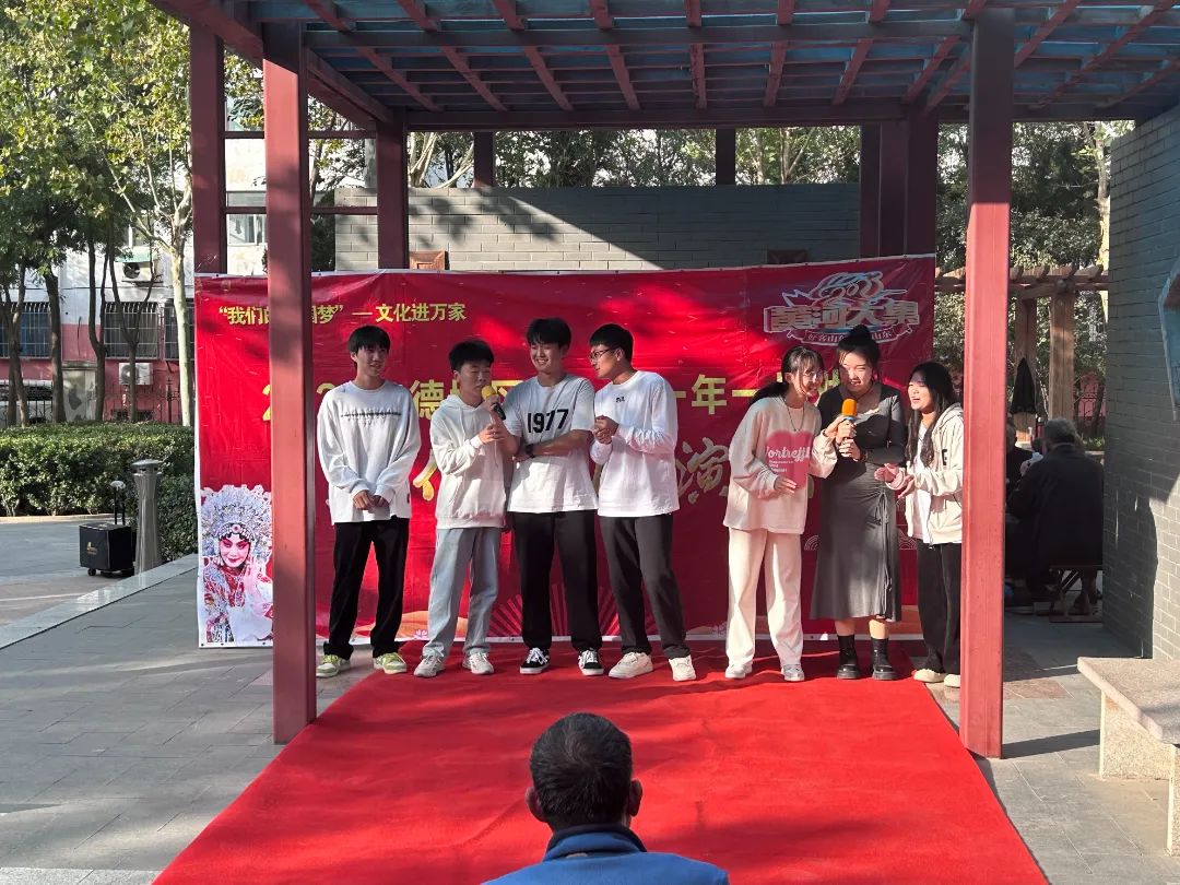 在活动中,志愿者们结合自己的专业,为社区居民带来了丰富多样的艺术表演,演出在萨克斯演奏中拉开序幕,舞蹈《黑走马》与《博客》热情奔放,带动了现场的气氛;女生独唱《半壶纱》飘逸流畅的旋律,清雅从容的吟唱,无不蕴藏着一股超凡脱尘的静心能量;古筝独奏《茉莉花》,优美旋律如泉水般流淌,台下观众纷纷赞叹;接下来,多人合唱《自由飞翔》、双人舞《听》、男生独唱《不要再说了》等精彩节目一一上演,赢得了台下观众的阵阵掌声和欢呼。志愿者们以音乐传递温情,以舞蹈表达情感,以艺术的形式深入基层,奉献青春力量。