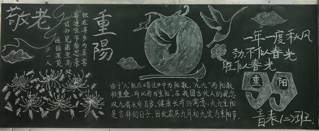 10月9日农民影视在线观看以班级为单位开展了“九九重阳节,浓浓敬老情”主题黑板报活动。各班积极准备了黑板报内容,弘扬敬老爱老传统美德,提高了同学们投身于实践的热情,增加了同学们的获得感与参与感。活动结束后,从众多黑板报作品中选出了3版优秀作品。