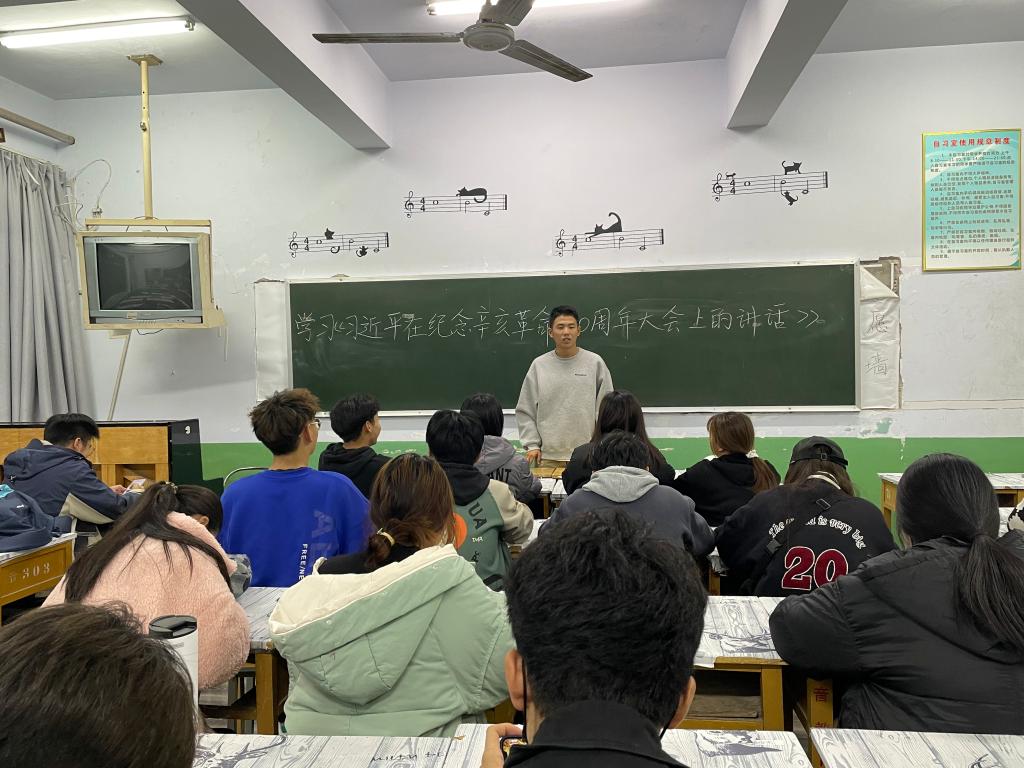 大会上习近平总书记高度评价了辛亥革命的历史功绩和重大意义,回顾总结了中国共产党继承孙中山先生革命事业、团结带领人民不懈奋斗的光辉历程,深刻阐述了辛亥革命110年来的历史启示,让大家铭记先驱功勋,汲取奋进力量,秉承先驱遗志,共担历史使命,为当今祖国的现代化建设努力学习。习近平总书记的重要讲话立意高远、思想深邃,鼓舞人心、催人奋进,激励着海内外全体中华儿女心往一处想、劲往一处使,为实现中华民族伟大复兴而共同奋斗。