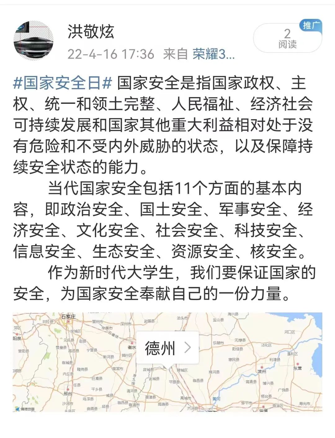 国家安全日系列活动的举办,在短时间内为同学们提供了较为完整的国家安全日的介绍与指引,提供了认识交流学习的平台,为同学们认识国家安全、维护国家安全树立了标杆,相信在此次活动后,同学们会对国家安全有自己的理解并付诸行动。
