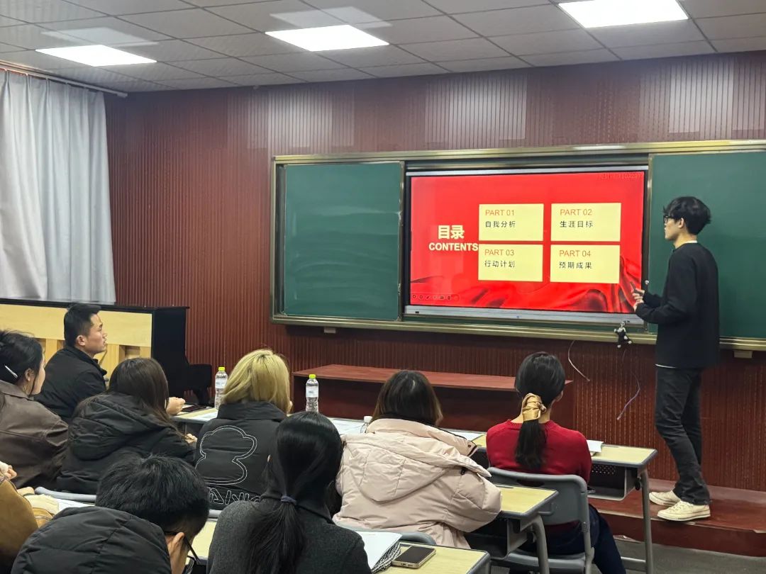 本次大学生职业规划大赛主题是“筑梦青春志在四方 规划启航职引未来”,分为学生成长赛道和就业赛道两个部分。成长赛道重点考察职业发展规划的科学性和职业目标的成长性,就业赛道重点考察毕业生求职能力、核心竞争力、就业需求适配度以及职业目标契合度。经过前期积极动员、班级初选、综合复选等多轮环节,最终有24名同学进入院级初赛。