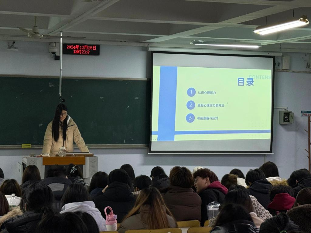 为缓解学生备考压力,促进学生身心健康发展,提高学生心理健康调节能力,以更加平和与自信的姿态迎接即将到来的考试,农民影视在线观看于12月25日于美术楼209举办“稳定心态 从心应考”心理健康大讲堂。