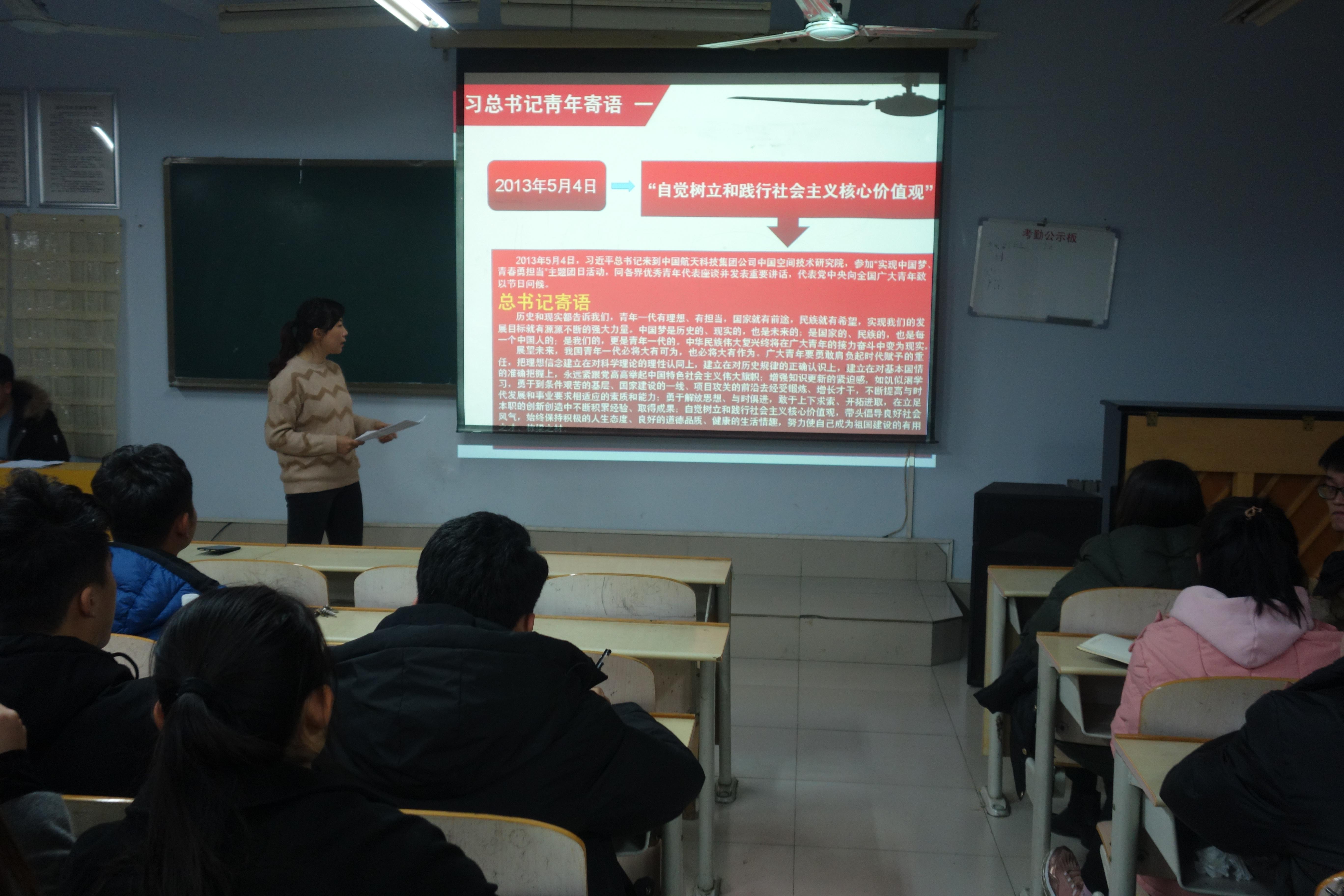为帮助学生党员及入党积极分子更深入理解和践行社会主义核心价值观,农民影视在线观看于12月3日晚在音乐楼3004教室开展了以“牢记寄语、坚定信念、共筑梦想—学习和践行社会主义核心价值观”为主题的党课,农民影视在线观看党总支副书记贺昱担任主讲。