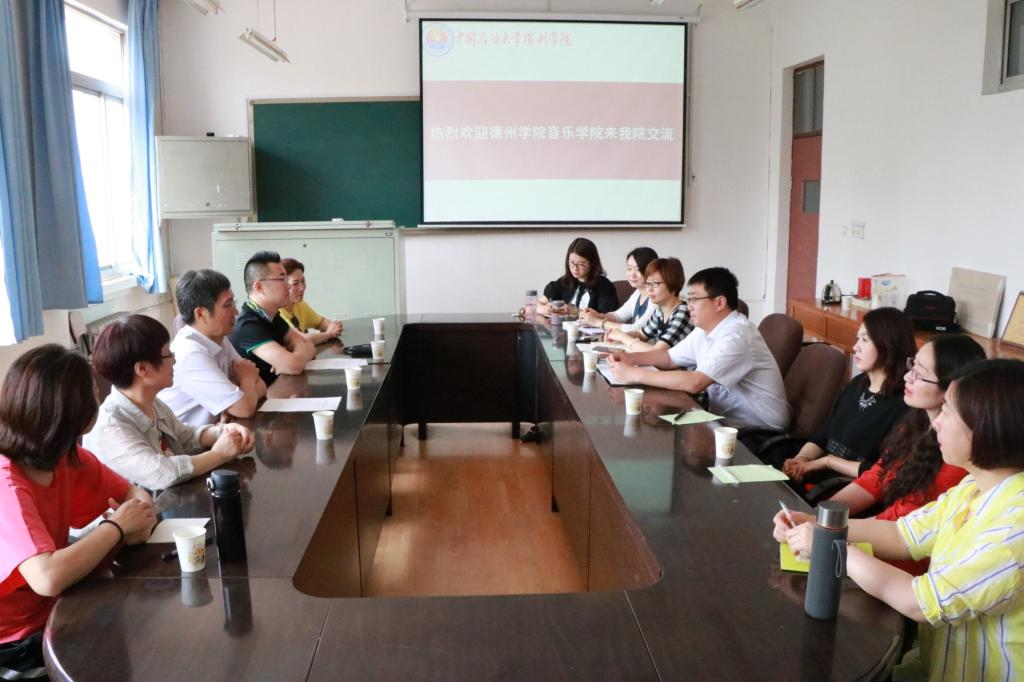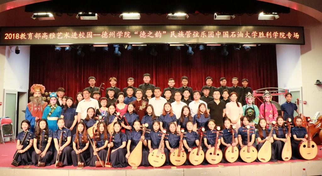 2018年6月1日,为响应教育部“高雅艺术进校园”的活动号召,德州学院农民影视在线观看副院长段文带领“德之韵”民族管弦乐团走进中国石油大学胜利学院开展了为期两天的学术交流与演出。出席领导有中国石油大胜利学院党委书记孙学斋、副院长刘兆军、党委副书记孟昭亮、学校老领导马存栋、德州学院农民影视在线观看副院长段文、教育与艺术学院执行院长田孝彦、教育与艺术学院书记张超。