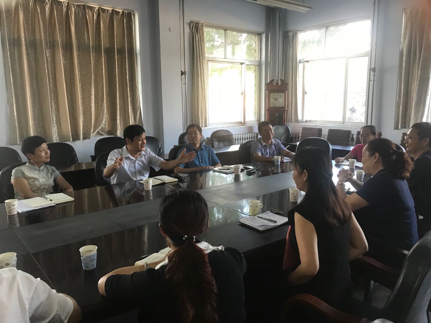 8月29日下午,德州学院校长赵胜村带领校办公室、人事处、教务处等部门负责人到农民影视在线观看开展调研并指导新学期工作。农民影视在线观看党政领导班子、系主任、实验中心主任、工会主席参加了调研会议。