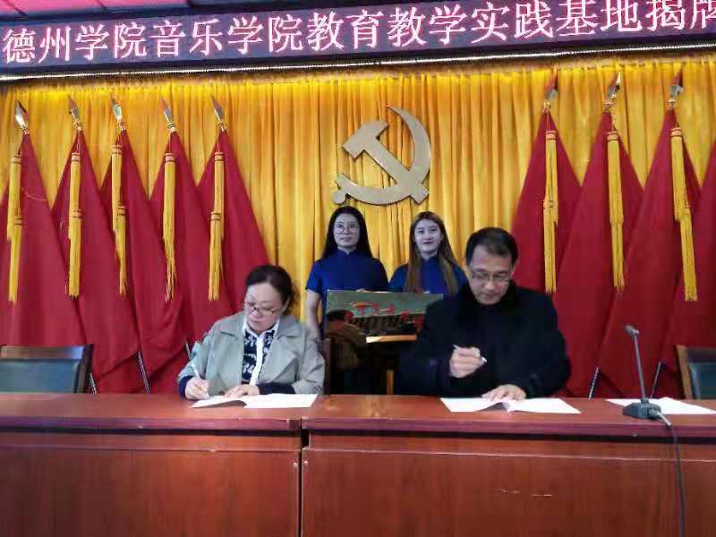 仪式开始,首先介绍双方出行此次仪式的领导,德州市第五中学校长冯权、副校长李朝霞、音乐组组长蔺丽、德州学院农民影视在线观看院长田屹、教学实践中心主任马锡骞和音乐学系声乐教研室主任杜乡。随后在双方的见证下,德州市第五中学校长冯权与农民影视在线观看院长田屹签订了《德州学院教育教学实践基地协议书》,顺利完成了的揭牌仪式,仪式圆满结束。