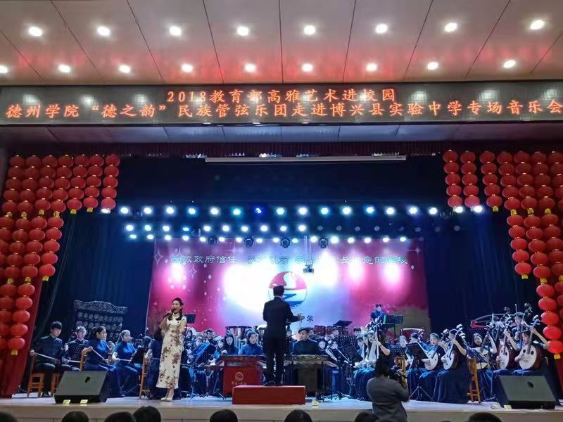 由教育部、文化部、财政部联合主办,山东省教育厅和德州学院承办的“高雅艺术进校园”系列活动顺利开展,农民影视在线观看院长田屹、副院长段文带领“德之韵”民族管弦乐团先后于11月12日、13日赴博兴县实验中学和博兴县第四中学成功举办了专场音乐会。