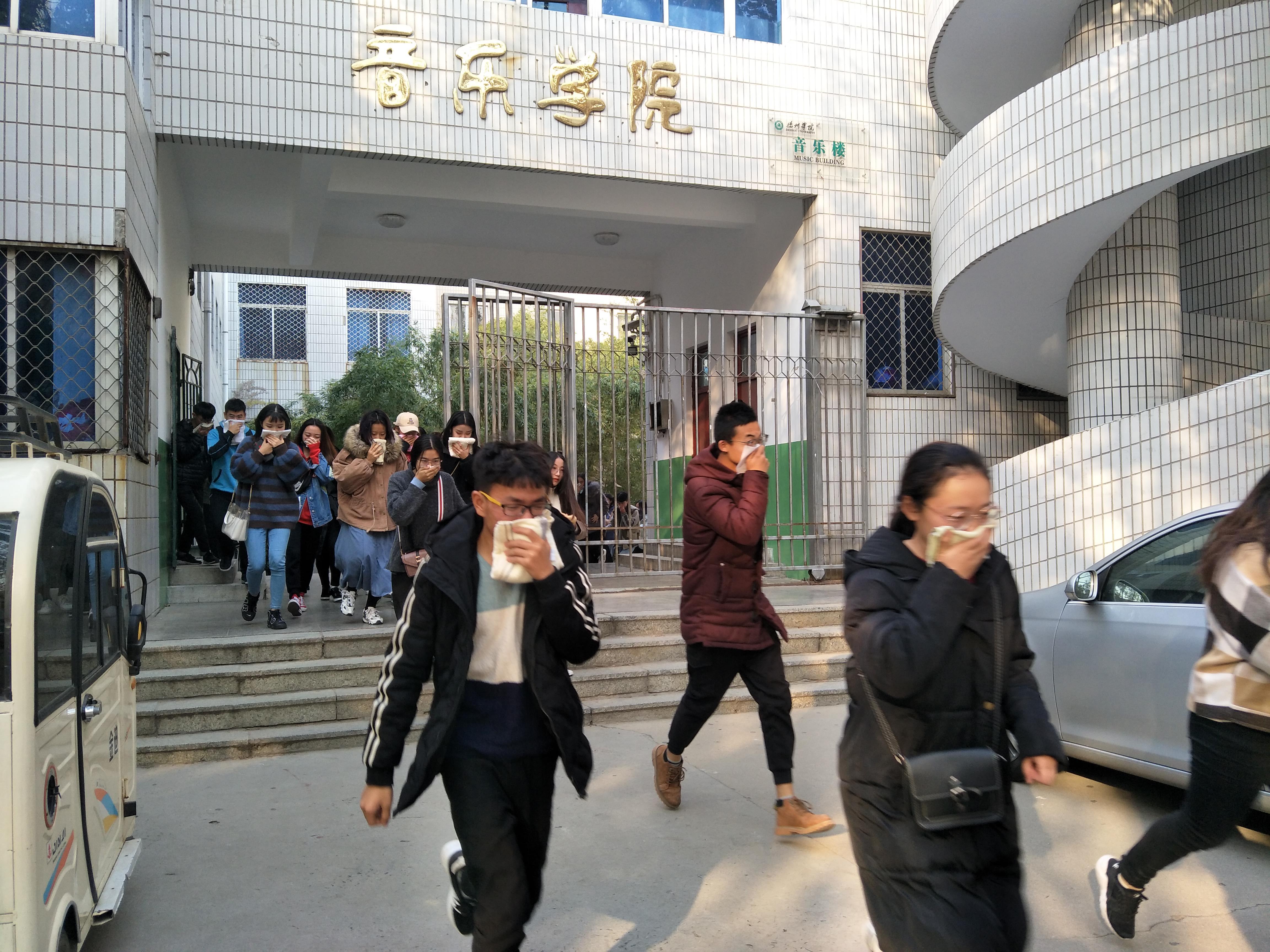 首先市安防火服务中心教官乔立涛介绍了此次活动的意义以及活动中应该注意的事项,并为同学们简要介绍了火灾逃生常识。随着消防报警声的响起,同学们用湿毛巾捂住口、鼻,尽量将身体放低,迅速撤离教学楼,有序地疏散到安全区域。演练过程中,指挥人员沉着冷静,同学反应敏捷,圆满完成本次演练。