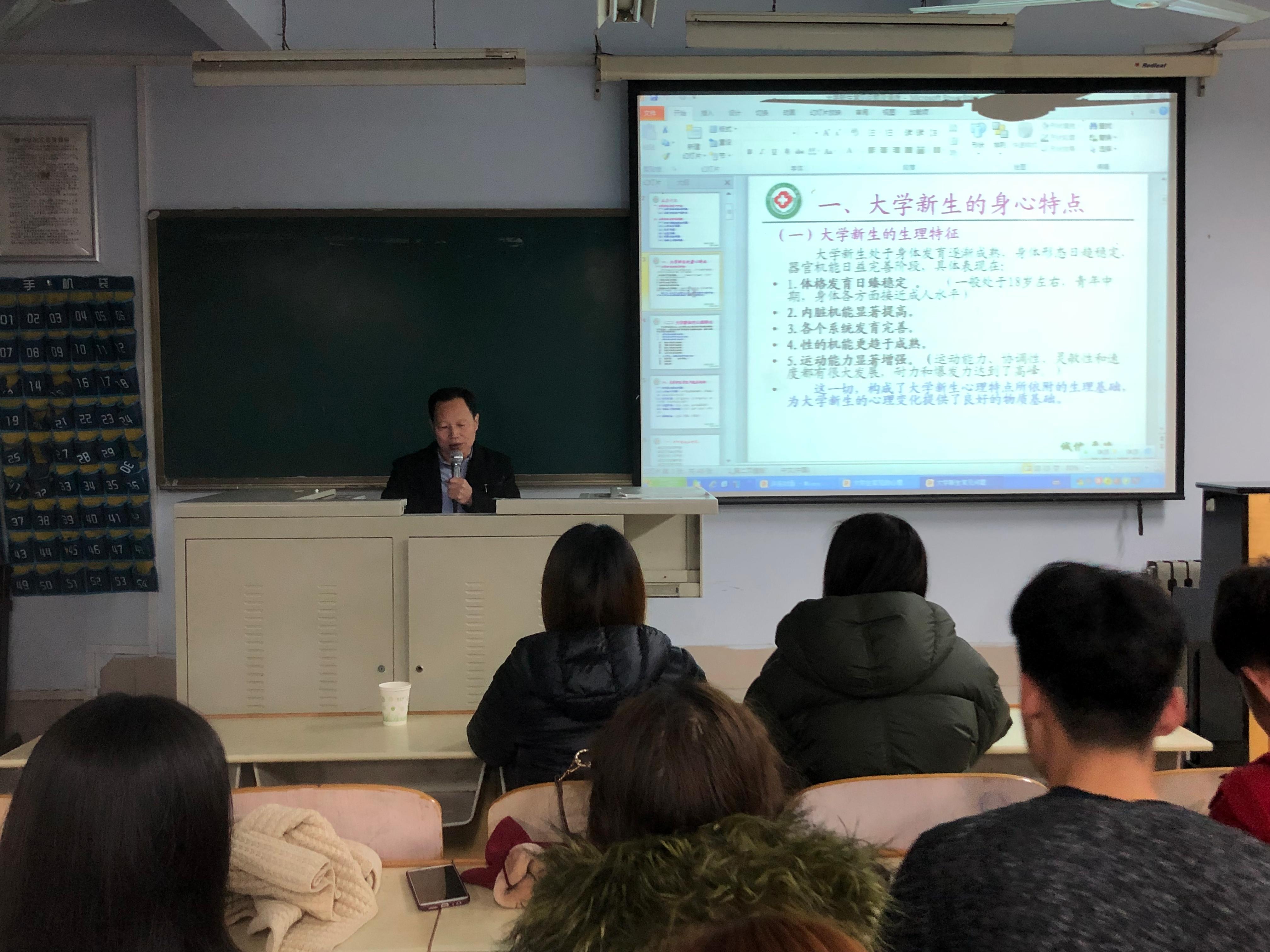 11月30日晚7点,农民影视在线观看在音乐楼2004教室举办了以"健康伴我心,携手大学路" 为主题的心理健康知识讲座。团总支书记史璇、辅导员李曼宁及2018级全体同学到场参加。