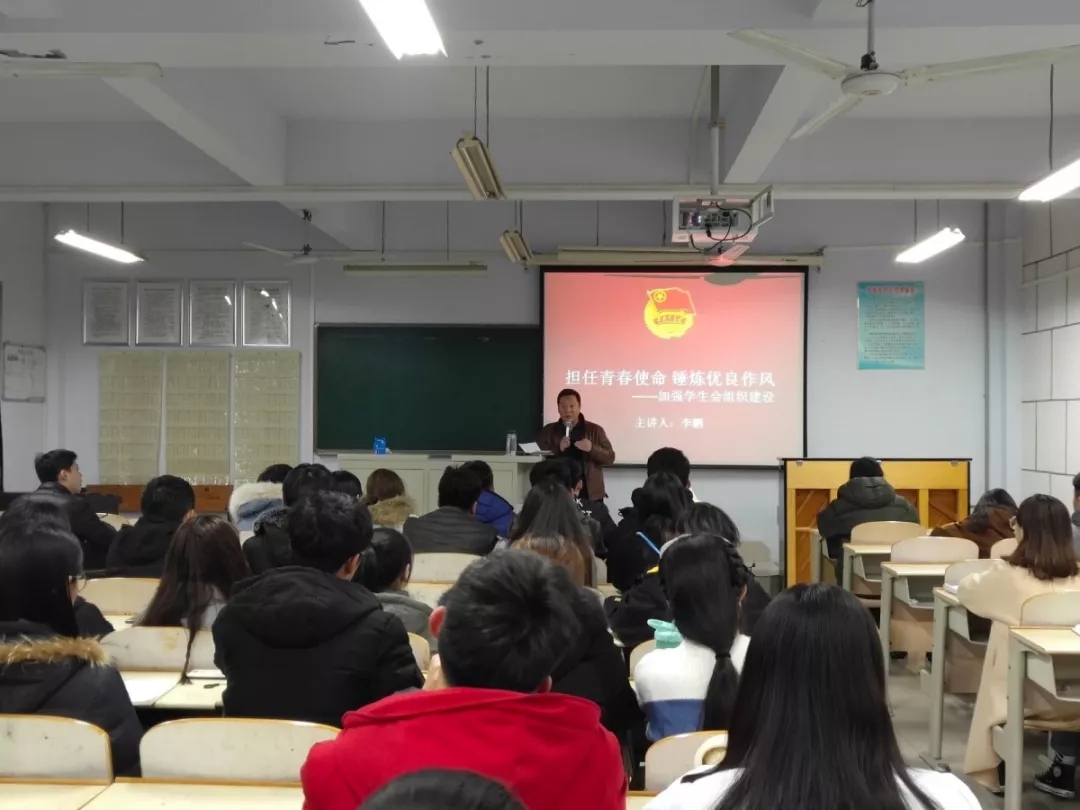 12月4日,第二讲由原团总支书记李鹏向学员们讲解如何加强学生会作风与组织建设。他从“孝”“人”“事”三个方面出发,要求同学们好学上进,践行孝道;做一个懂做人、会做人、善做人的大学生,重点指出学生会工作要多听取群众意见,懂计划、常反思、善总结,学会发挥核心领导力和团队凝聚力。