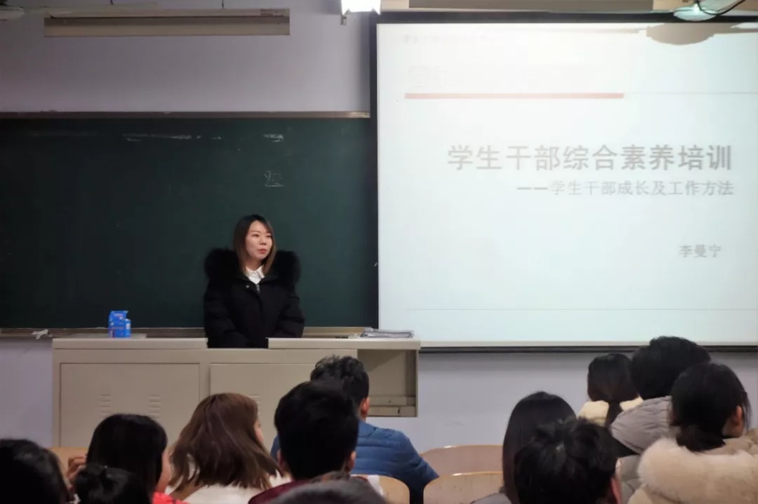 12月7日,第五讲由辅导员李曼宁讲解学生干部的综合素质培养,她通过学生干部角色、学生干部素质和能力要求、学生干部工作等诸多方面,教给学员们基本的工作方法、工作思路、基本流程以及学生干部在工作中要处理好的问题。