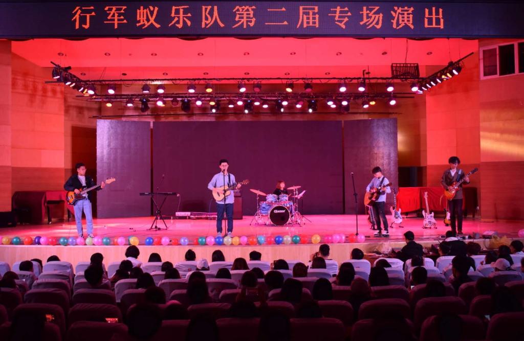 2019年4月26日晚七点半,行军蚁乐队在南校音乐厅举办第二届专场演出。农民影视在线观看党总支副书记贺昱,团总支书记史璇,政治辅导员李曼宁到场观看,农民影视在线观看全体成员到场观看。