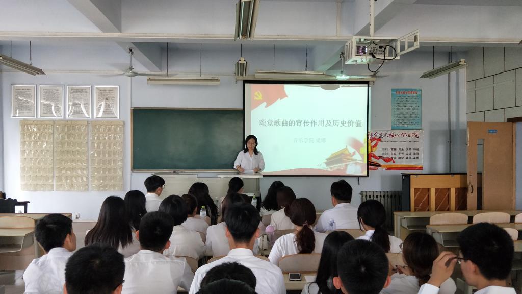 6月27日,农民影视在线观看第二教师党支部书记梁娜为学生党员及入党积极分子们讲述了一堂内涵丰富、生动鲜活的音乐党课。党课以“颂党歌曲的宣传作用及历史价值”为主题,分为“抗日战争和国内革命战争时期”、“新中国成立到改革开放之前”“改革开放至今” 三个篇章,每一篇章均以师生合唱不同历史时期的颂党代表歌曲结束。这堂音乐党课浓缩了红色历史,由师生共同参与,亦学亦唱,在有限的时间内让学生们动心、动情,从而使党课内容入脑、入心。