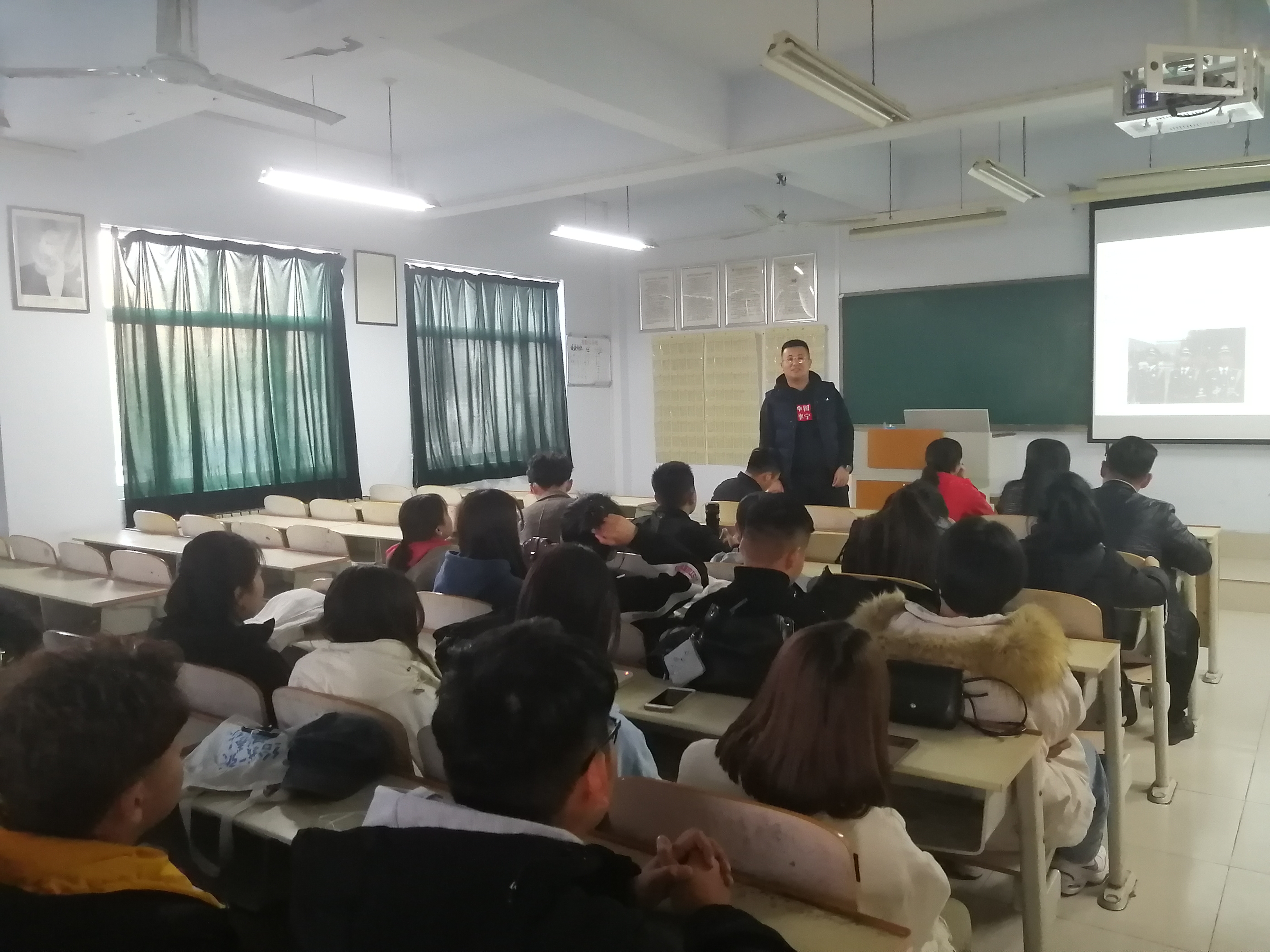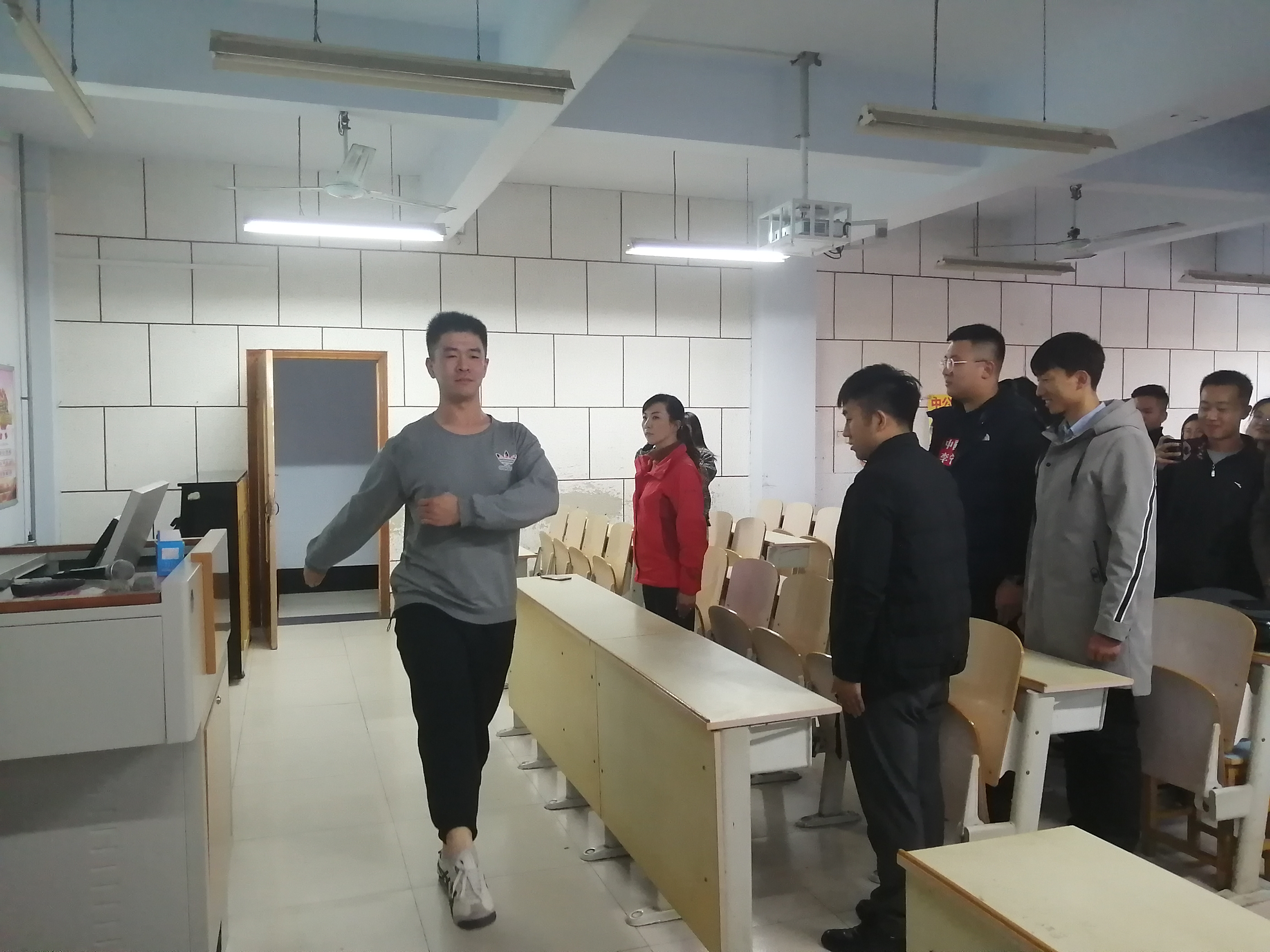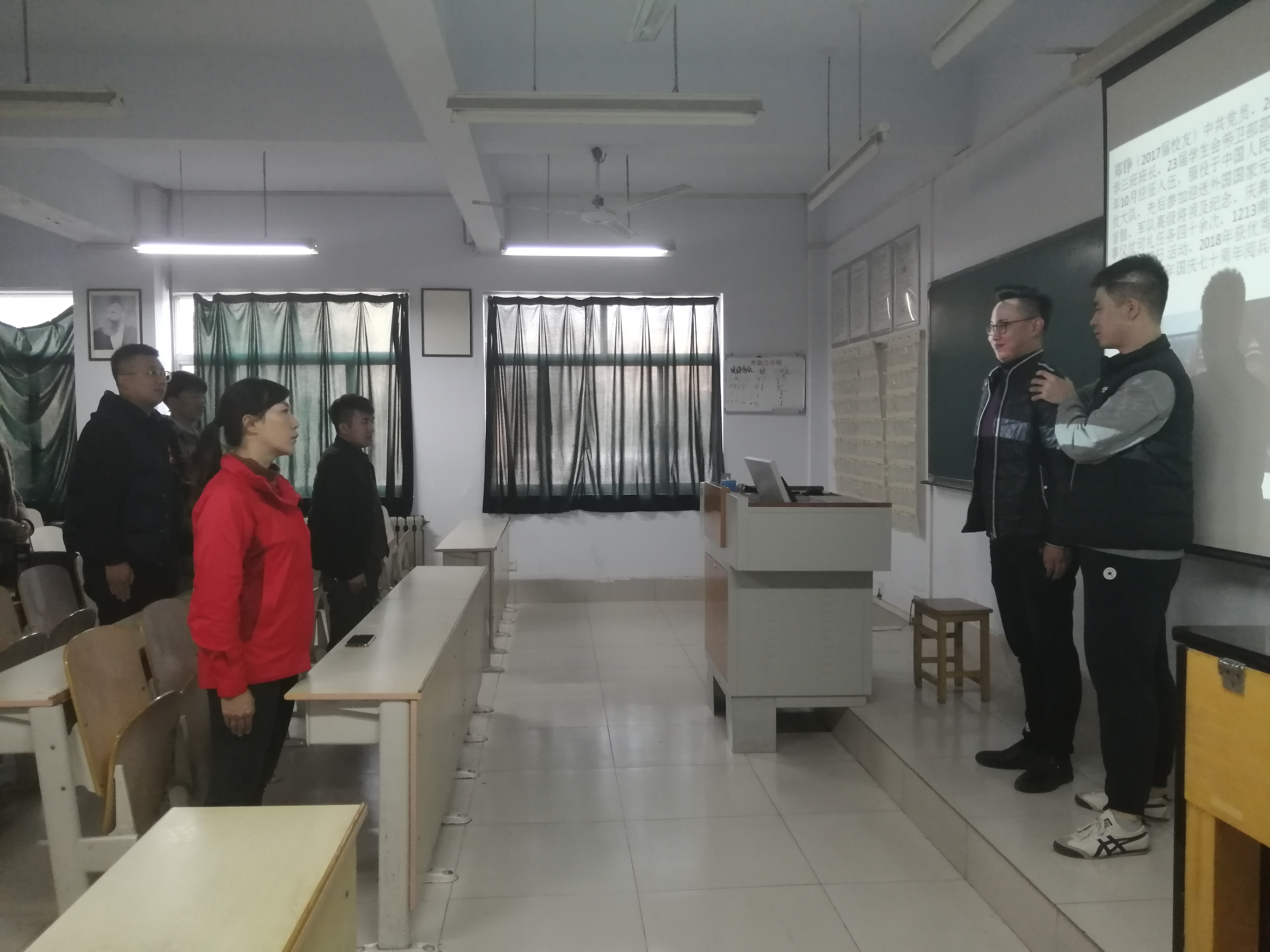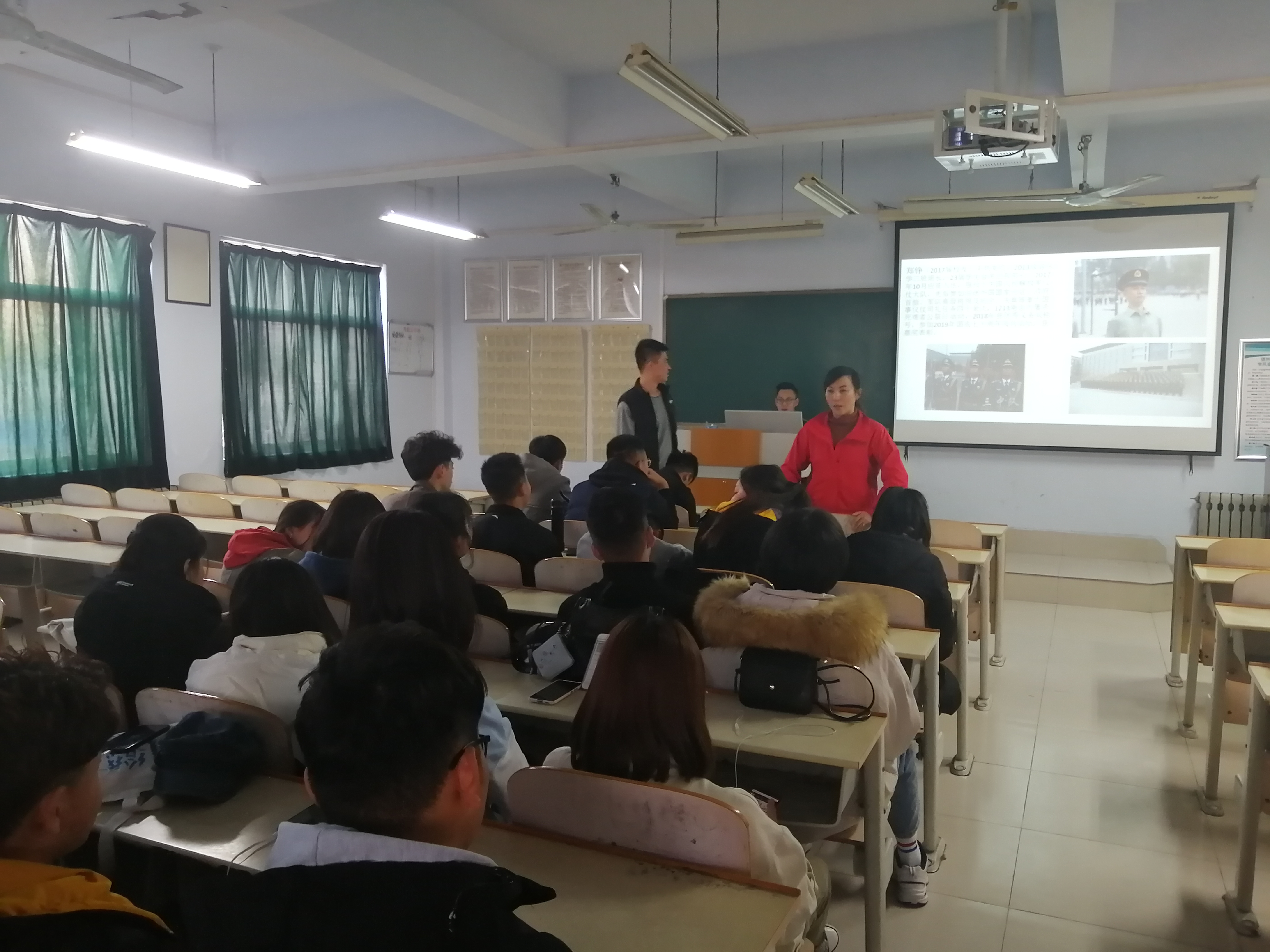 优秀校友郑铮作了题为“永葆初心本色,无悔军旅生涯”的报告,分享了他毕业后两年的军旅生活感悟,以实例为大家诠释了勇于担当、坚持不懈、永远奋进的军人形象,号召学弟学妹们珍惜当下时光,努力奋斗。他与学弟学妹们亲切互动,现场教授站军姿、走正步。