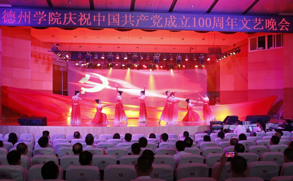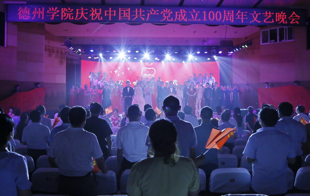 晚会在舞蹈《红旗颂》中拉开序幕。民乐合奏《唱支山歌给党听》曲调悠扬,抒发了对党最真挚的热爱,男女四重唱《百年》诉说着建党百年来的不易与艰辛。情景剧《到西部去》展示德院学生党员响应国家号召,参加“西部计划”志愿服务,他们带着对党的热爱、学校的期望以及老师的嘱托,在祖国和人民最需要的地方建功立业,用实际行动谱写服务西部、服务基层的壮丽篇章。《再一次出发》把晚会推向高潮,再一次出发,踏上全新的百年征程;再一次出发,继续谱写中华民族的辉煌。晚会在唱响党百年辉煌的同时,也展现着德州学院师生知党、爱党、信党,矢志不渝跟党走的坚定信念和奋斗情怀。最后全场起立,共同高唱《没有共产党就没有新中国》。