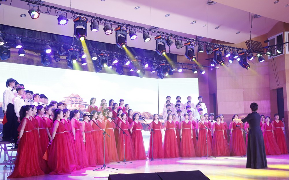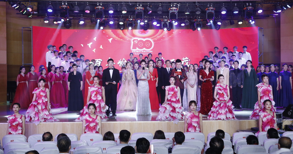 6月28日晚,庆祝中国共产党成立100周年文艺演出《百年恰是风华正茂》在音乐厅举行。学校领导班子全体成员,各职能部门、科研机构、教辅单位、教学单位党政主要负责人,教职工以及学生党员代表等相聚一堂,共庆建党百年华诞。