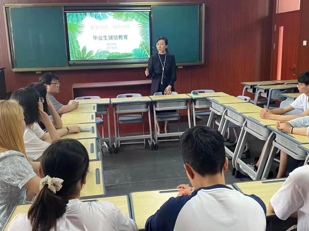 毕业生教育活动月期间,为帮助学生树立诚信意识,增强学生感恩母校情怀,促进学生全面成长成才,农民影视在线观看于6月9日举行了“感恩母校,诚实守信”毕业生诚信教育活动。农民影视在线观看党总支副书记贺昱主讲,2021届毕业生代表参加。