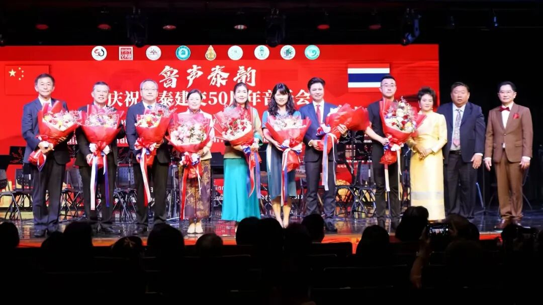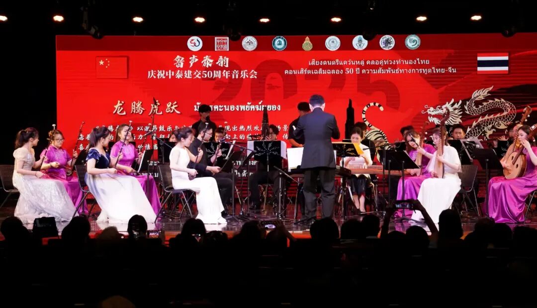 此次演出以“鲁声泰韵·中泰建交50周年音乐会”为主题,通过中国传统民乐、中国特色歌曲及民族舞蹈,为泰国师生及当地民众呈现了一场视听盛宴。民乐合奏《龙腾虎跃》、埙筝合奏《梅花三弄》、爱国主义歌曲《我和我的祖国》、古诗词歌曲《竹枝词》、山东民间舞蹈《白鹭》等节目赢得阵阵掌声,泰国学生亦献上传统舞蹈《泰国长鼓舞》等作品呼应,彰显两国文化交融互鉴。