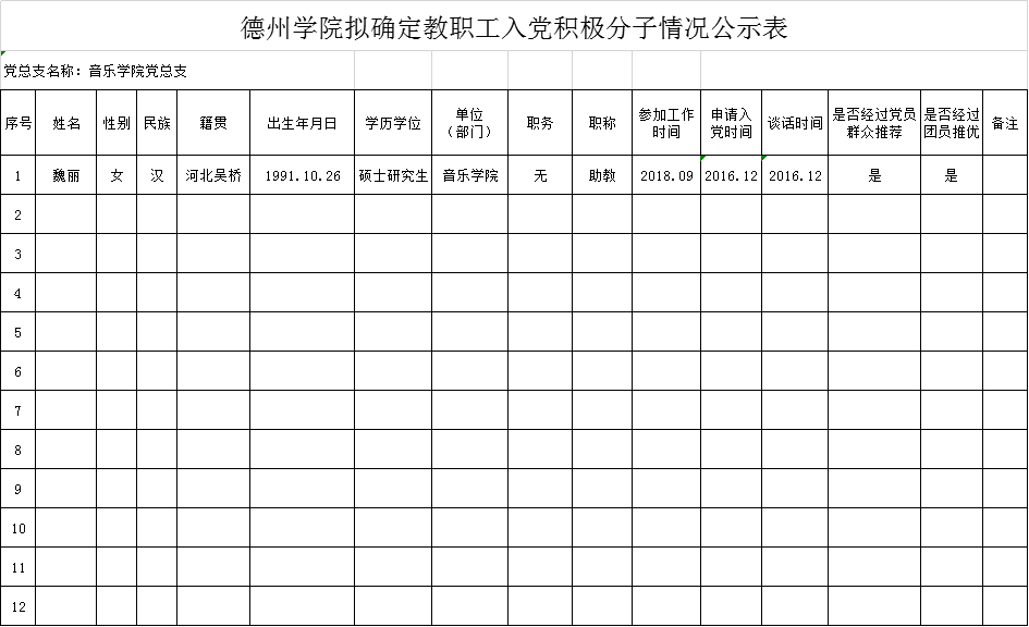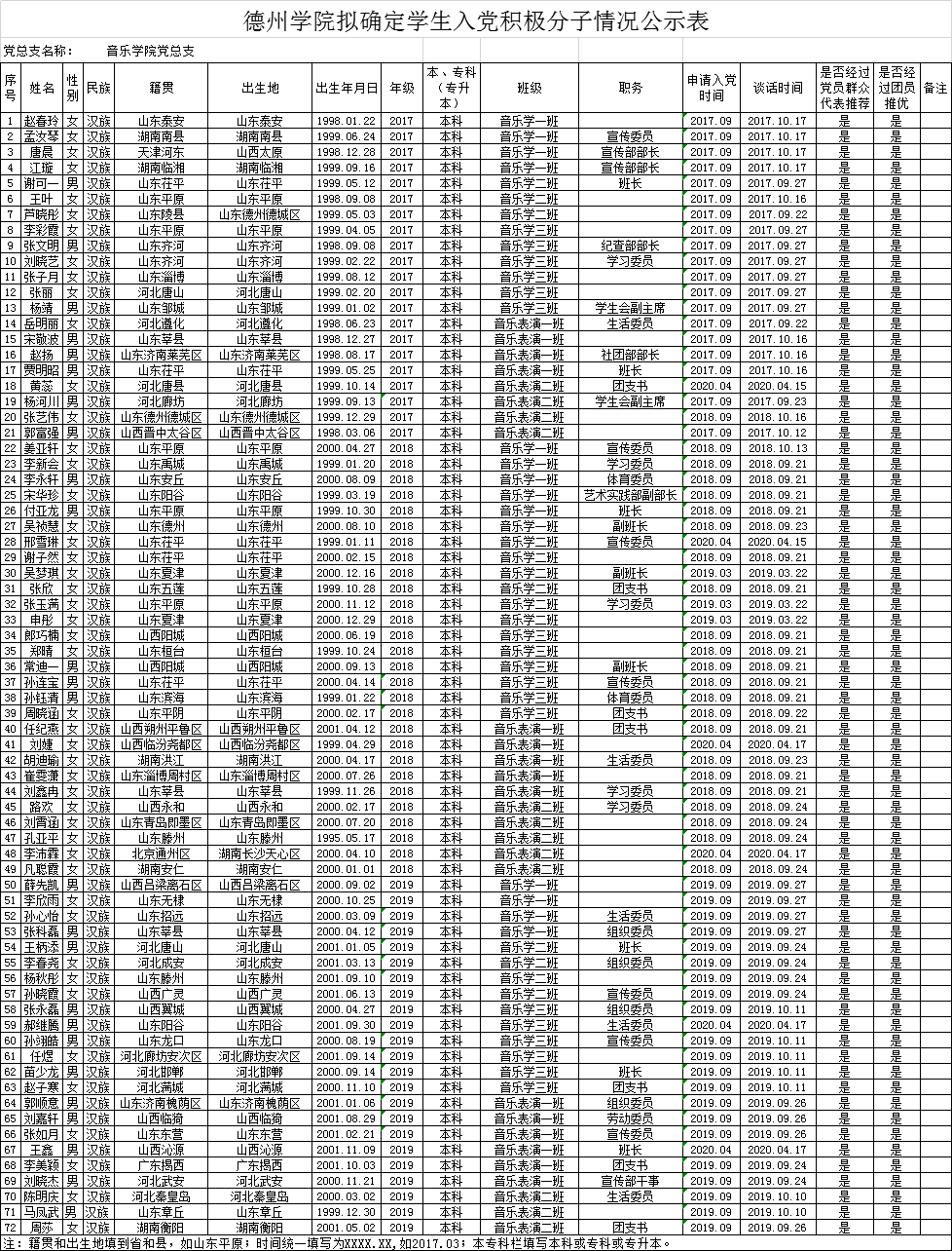 附表:德州学院拟确定入党积极分子情况公示表