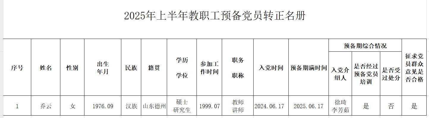 中共预备党员转正公示公告