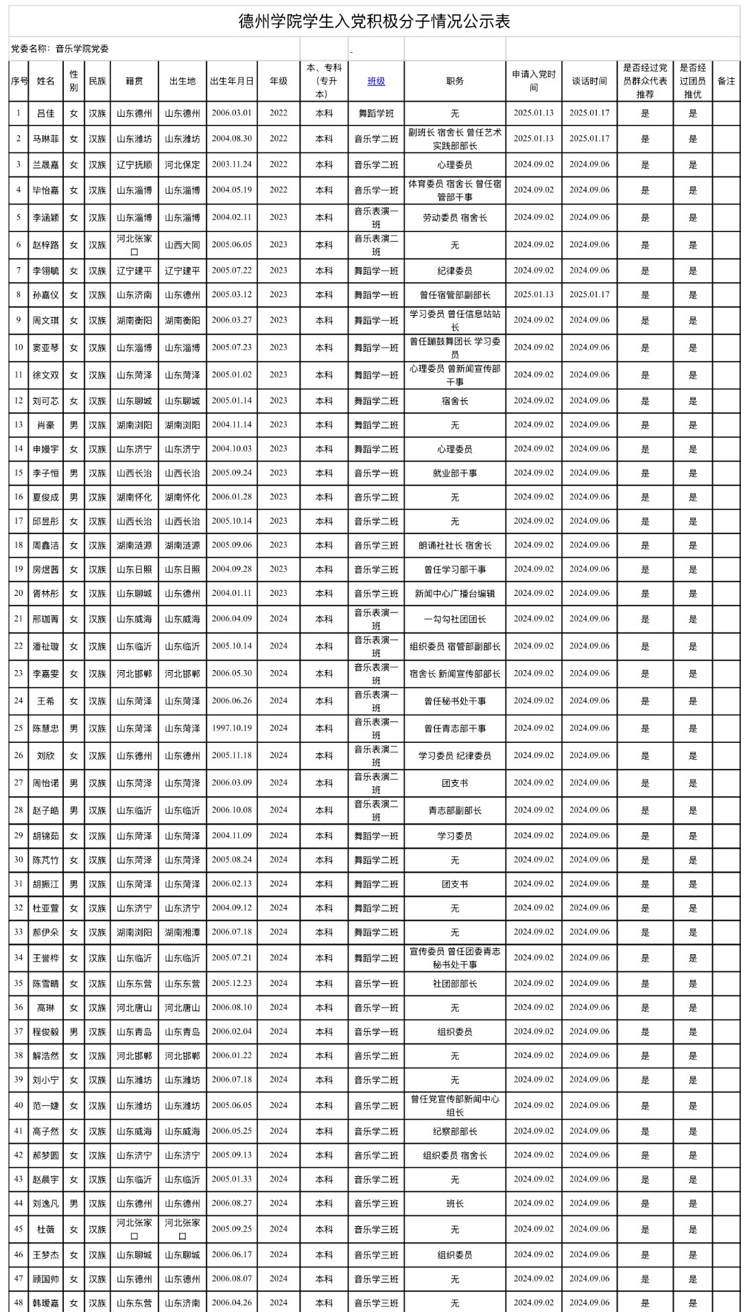 附表:德州学院入党积极分子情况公示表