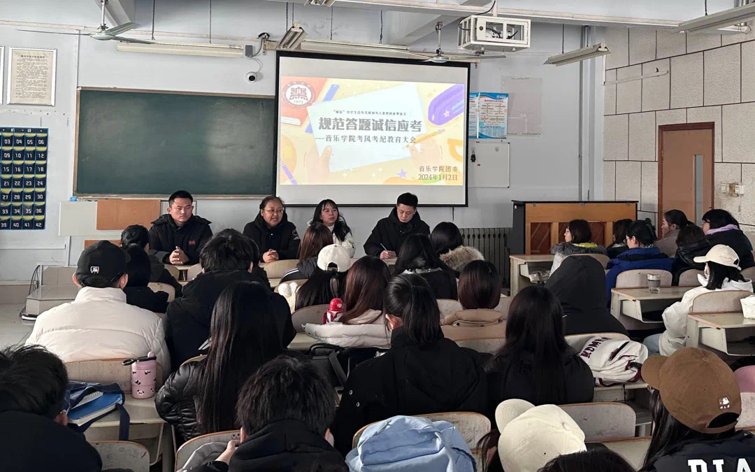 为加强考风考纪教育,增强学生诚信考试意识,端正考试态度,营造良好的考试氛围,1月2日中午,我院在音乐楼0261教室召开考风考纪动员大会。农民影视在线观看党委副书记米彦、团委书记陈璨、辅导员老师、2023级全体及2020级、2021级、2022级学生干部参会。
