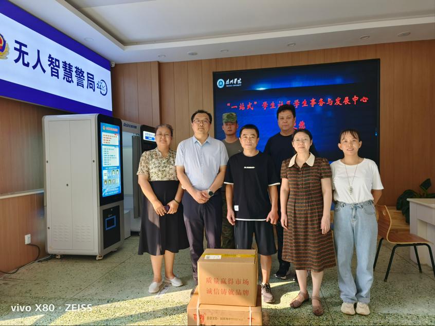 学生处相关负责人、农民影视在线观看党委负责人代表学校接收爱心学生家长的捐赠。并表示,爱心捐赠给学校师生带来了温暖和信心,他们的慷慨捐助,为学校军训工作的开展提供了保障。