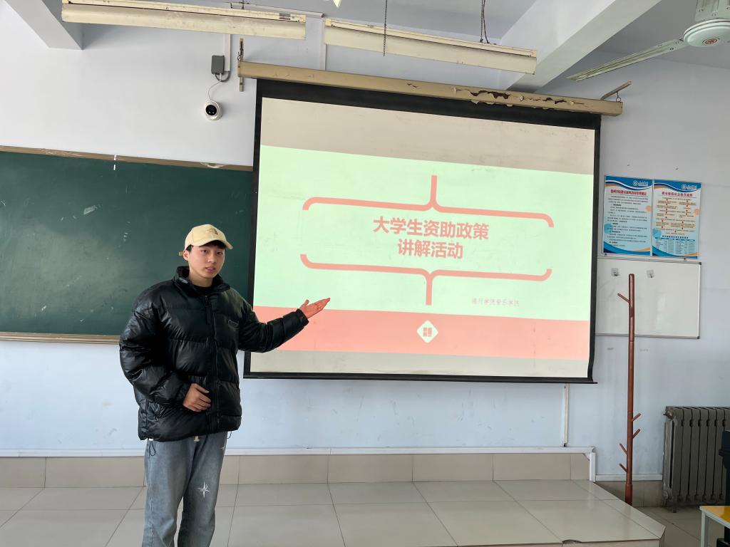 会上奖助学金工作负责人向大家讲解了家庭经济困难学生资格认定、档次的评定、国家助学金的申请流程以及国家助学金的管理实施办法。