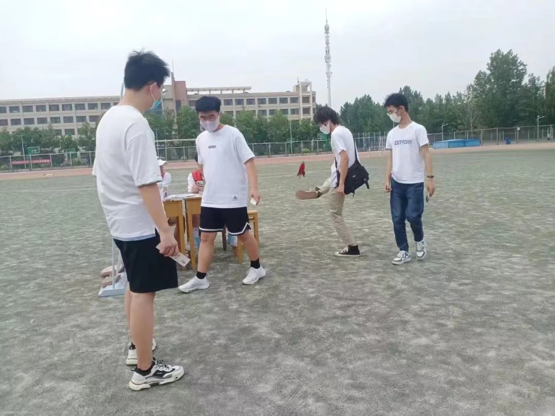 在裁判和志愿者的指导下,各项活动有序开展。“‘毽’舞飞扬”游戏考验的是同学们的协作能力以及团队力量,5个队员轮流踢毽子,踢满50个方可获胜。