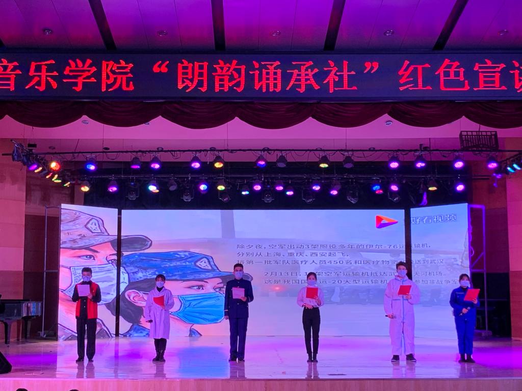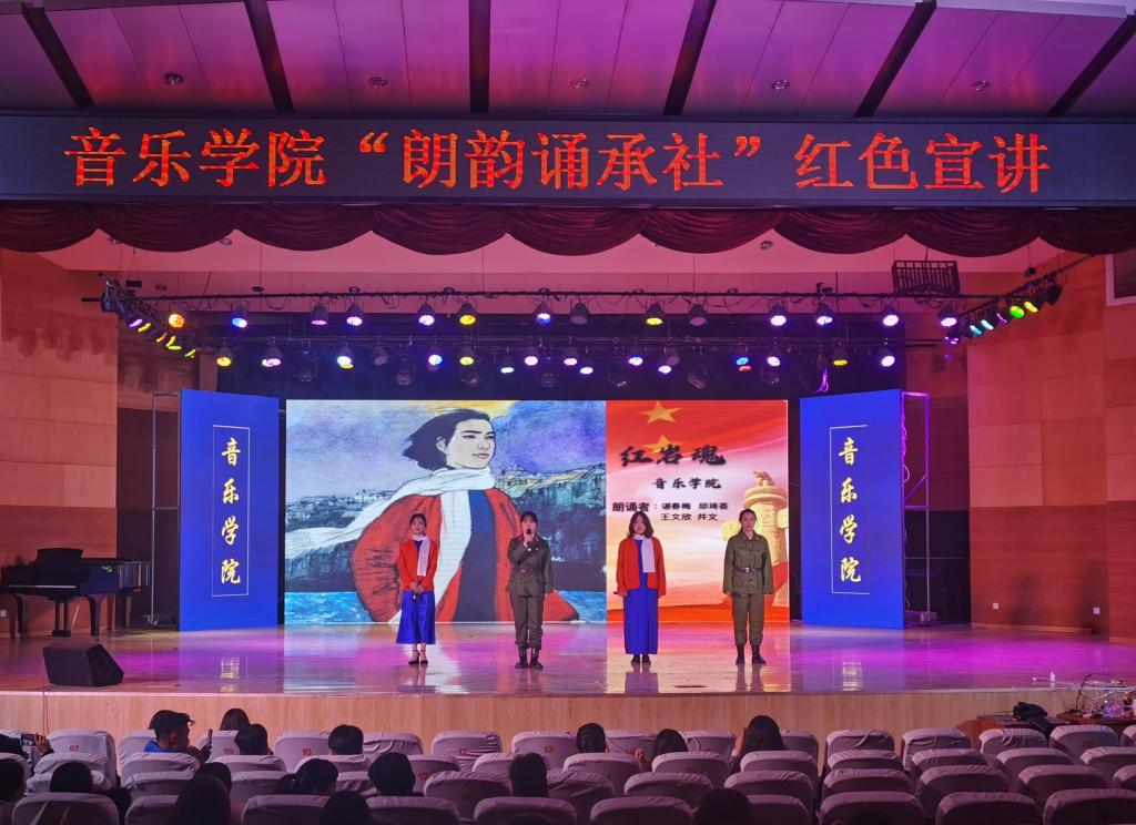 农民影视在线观看学风建设月期间,为传承红色经典,激发学生们爱国主义情怀,11月27日晚,“朗韵诵承社”在音乐厅举办了红色宣讲活动。农民影视在线观看主要领导、团学人员及全体学生到场观看演出。
