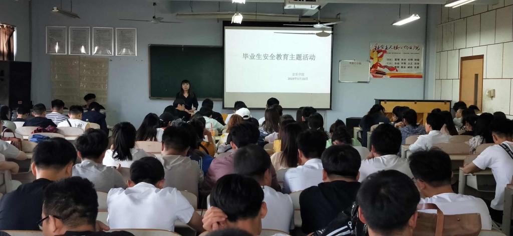 为配合做好2019届毕业生离校工作,营造安全有序的环境和氛围,确保同学们顺利毕业、文明离校,按照学校整体部署,结合自身毕业生工作实际,农民影视在线观看于6月19号在3004教室开展了毕业生安全教育主题活动。本次活动由辅导员李曼宁主讲,2015级全体毕业生参加了本次活动。