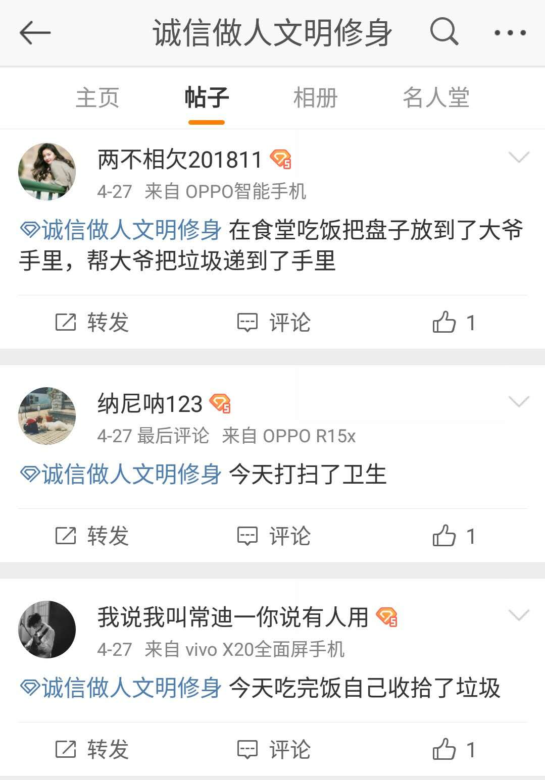 4月19日—5月9日,农民影视在线观看在2017级与2018级学生中开展了“诚信做人,文明修身”系列活动之“I wanna change”21天打卡活动。